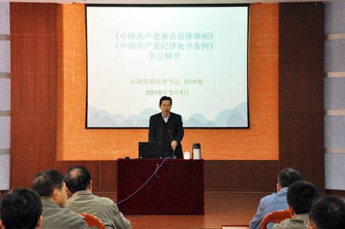 2016年3月1日下午,公司黨委書記、董事長曾凡沛在俱樂部會議室主持開展《中國共產(chǎn)黨廉潔自律準(zhǔn)則》、《中國共產(chǎn)黨紀(jì)律處分條例》(以下簡稱《準(zhǔn)則》、《條例》)專題學(xué)習(xí)活動,漳州市國資委紀(jì)委書記柯坤海受邀進(jìn)行了《準(zhǔn)則》、《條例》宣講。公司總部及子公司中層以上管理人員、各黨支部委員、業(yè)務(wù)部門黨員、黨員職工代表、黨員班組長、黨員助理級以上技術(shù)管理人員等200多人參加了學(xué)習(xí)活動。
