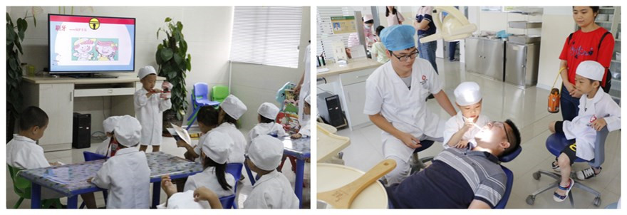 活動當天,小朋友變身“小牙醫(yī)”開始體驗之旅,在寓教于樂的角色扮演中了解到壞牙的樣子和產生原因,學習到各種牙齒小常識,認識了愛牙、護牙的重要性,還學會了正確的刷牙方法--巴士刷牙法。最后,親子活動在小朋友們舉起“優(yōu)秀小牙醫(yī)”獎狀的合影中圓滿結束。