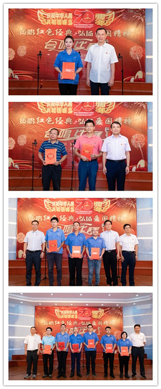 ????為慶祝中華人民共和國成立70周年, 2019年9月20日晚上,公司黨委在俱樂部一樓會議室舉辦以歌頌黨、歌頌祖國、歌頌新時代為內容的“傳唱紅色經典 弘揚愛國精神”主題合唱比賽。漳州市國資委副調研員倪昌源、公司領導出席觀看比賽,并為獲獎代表隊頒獎。