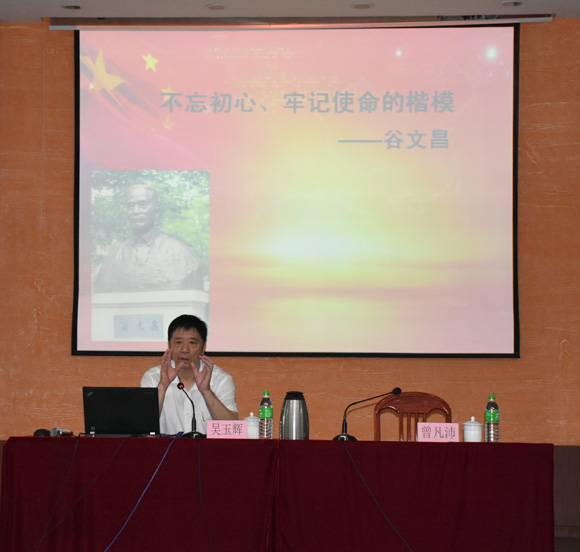 ????2019年9月23日上午,公司黨委書記、董事長曾凡沛在俱樂部會議室主持召開第二場 “不忘初心、牢記使命”主題教育集中學習研討會,邀請中共中央黨校特約研究員、中國作家協會會員吳玉輝講授《“不忘初心、牢記使命”的楷模——谷文昌》,公司領導、各黨總支、黨支部書記及支委、中層干部及主題教育領導小組辦公室成員參會。