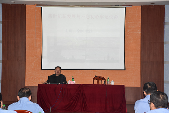 ????福建行政管理學院徐剛教授在會上講授了《新時代新發展與“不忘初心、牢記使命”》,他講述了中國共產黨從建黨到建國的歷史足跡,闡明了中國共產黨立于不敗之地的內在邏輯,并圍繞“不忘初心、牢記使命”主題教育的提出、如何理解“不忘初心”、如何理解“新時代新發展”、如何理解“牢記使命”等四個方面,對主題教育的深刻內涵以及新時代新發展理念作了深入解讀和分析,課程有深度、有高度、有廣度,對集團廣大黨員和干部職工悟初心、守初心、踐初心,以及踐行新發展理念、推動高質量發展具有較強的指導意義。
