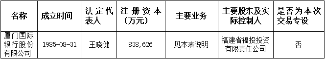 (二)廈門國際銀行股份有限公司為非上市金融機構(gòu),其基本信息如下: