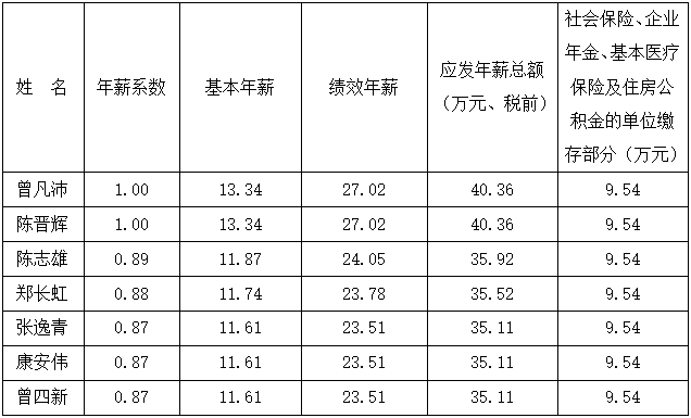 根據漳州市國資委及《公司董事長、經理班子年薪方案》的有關規定,公司董事長、經理班子的薪酬由基本年薪、績效年薪、任期激勵收入三部分構成,同意將公司董事長及經理班子人員2019年度薪酬方案修訂如下:
