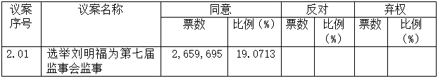 本次股東大會審議的議案二投票采用累積投票制表決,此議案的表決情況僅統(tǒng)計(jì)列示表決同意數(shù)。