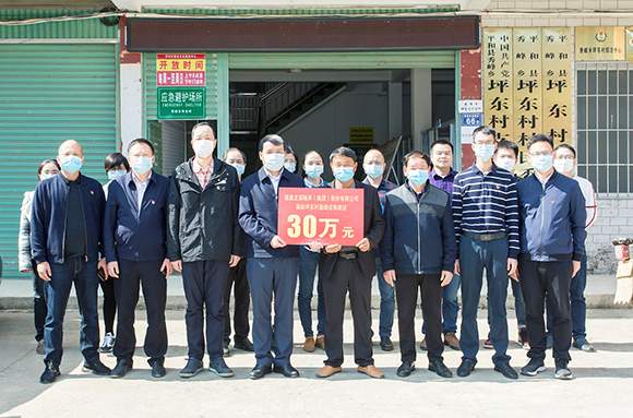 陳晉輝一行先與秀峰鄉領導、坪東村村委、困難群眾代表舉行座談會,共商坪東村脫貧事宜,之后在村委會門口隆重而簡樸地舉行了基礎設施建設資金捐贈儀式,陳晉輝代表公司向坪東村捐贈30萬用于改善坪東村基礎設施,便于坪東村群眾日常出行和貨物運輸,進一步鞏固扶貧成果。