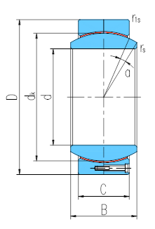 產品特點:外圈徑向分為兩半,用螺釘鎖緊,材料為碳鋼,磷化,球面粘貼PTFE編織物;內圈材料為軸承鋼,淬火,球面鍍硬鉻。