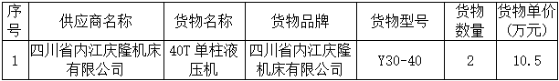 龍軸集團40T單柱液壓機采購與安裝中標公告