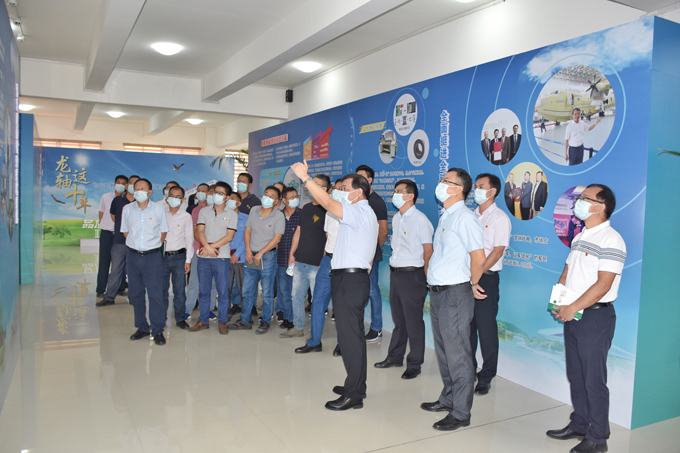 2022年10月17日,龍軸集團黨委書記、董事長陳晉輝帶領公司高管,在漳各黨總支、黨支部負責人觀看“龍軸這十年——初心如磐存高遠,循脈向前展宏圖”成就展。