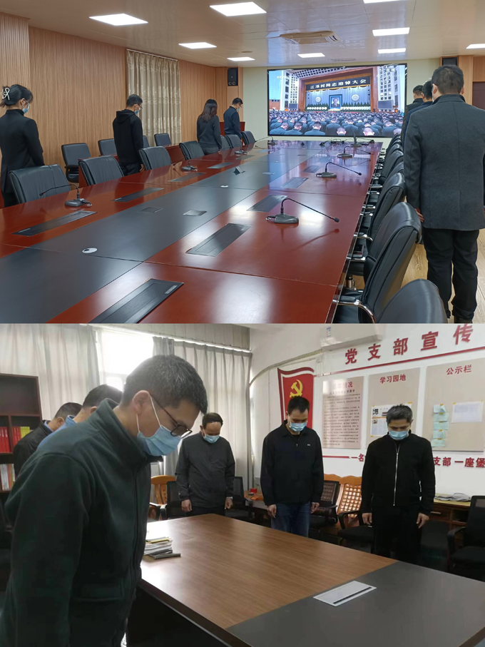收聽收看過程中,大家悲痛肅立,在悲壯的哀樂聲中默哀三分鐘,認真聆聽習(xí)近平總書記所致悼詞,追憶江澤民同志光輝的一生和建立的豐功偉績,深刻感悟江澤民同志的精神風(fēng)范。