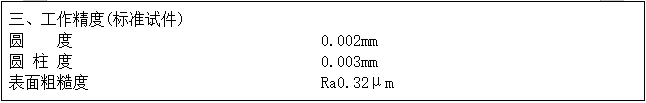 設備驗收時,根據實際生產情況,雙方協商選用其它產品型號作為驗收型號,以產品磨削精度來驗證設備加工精度,及對“主要技術參數”中的內容進行驗收