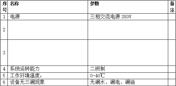 4、設備服務要求:供方在按上述供貨范圍提供設備的同時,須提供與之相應的伴隨服務。包括:技術資料、安裝調試、現場試運行、技術支持、技術服務、技術培訓等,以及在文中未提及的、隱含的其他必須由供方提供的相關服務。