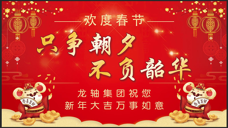 金豬納祥辭舊歲,福鼠賀春迎新年。值此新春佳節到來之際,我們向辛勤耕耘、無私奉獻的全體員工,向關心支持公司發展的離退休老同志,向默默無聞、積極支持公司員工工作的家屬,向一直關心龍軸改革發展的各級領導、社會各界朋友們,表示衷心的感謝,并致以誠摯的祝福!祝大家春節快樂、萬事如意!