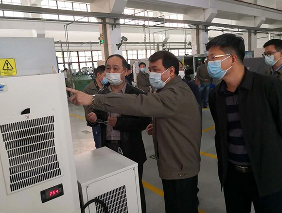 ????王衛明一行深入公司成品二車間和產品展示廳并舉行座談會了解情況。曾凡沛向王衛明一行介紹了公司產品及運用、復工復產及疫情防控應對措施、研制醫用口罩生產線等情況。王衛明對公司為疫情防控做出的積極貢獻表示肯定,同時指出,一要慎終如始加強疫情防控,切實把各項措施抓緊抓實抓細;二要精準有序推動復工復產,加快推進企業滿產超產,把疫情造成的損失降到最低限度;三要在科技攻關上持續發力,加快進程,為實現國家產業轉型升級和高質量發展做出應有的貢獻。