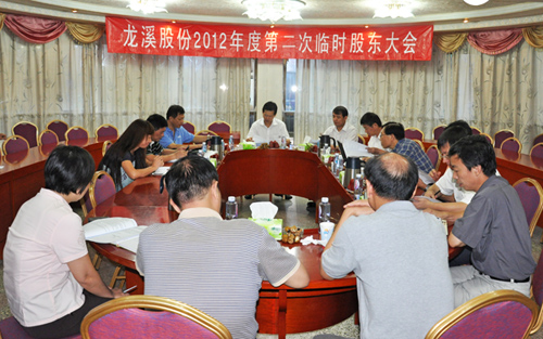 2012年6月18日,董事長曾凡沛在公司三樓會議室主持召開2012年第一次臨時股東大會,公司股東及代表、董事、監事及高級管理人員出席會議,北京市中瑞律師事務所許軍利、陸彤彤律師對大會進行見證。會議審議并通過《關于公司符合非公開發行股票條件的議案》、《關于公司2012年度非公開發行股票方案的議案》、《關于本次非公開發行股票募集資金投資項目可行性分析報告的議案》、《董事會關于前次募集資金使用情況的專項報告的議案》、關于公司非公開發行股票預案的議案》、《關于公司2012年非公開發行股票涉及關聯交易事項的議案》、《福建龍溪軸承(集團)股份有限公司與漳州市九龍江建設有限公司之附生效條件股份認購合同》、《關于提請股東大會同意豁免控股股東漳州市九龍江建設有限公司要約收購義務的議案》、《關于擬對子公司增資的議案》、《關于提請股東大會授權董事會全權辦理本次非公開發行股票相關事宜的議案》等18項議案。