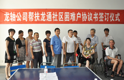 2012年6月28日下午,公司與薌城區南坑街道龍通居委會幫扶特困戶三方簽約儀式如期舉行。在薌城區南坑街道龍通居委會的見證下,公司黨委副書記張泰生代表公司與龍通社區5戶困難戶簽署企業結對幫扶協議書,承諾在2012年6月1日至2015年6月1日三年期間為5戶困難戶每年每戶提供3000元的幫扶資金,幫助他們解決生活困難,改善生活條件,并當場發放了2012年6月至2013年5月期間3000元的幫扶金。張泰生表示:“此次開展結對幫扶活動,幫扶對象有低保戶、因病致貧戶等,我們希望通過這樣的行動,傳播公益理念,倡導愛心活動,讓更多的困難家庭得到幫助!”