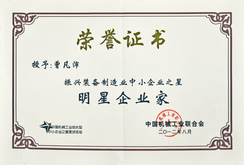 振興裝備制造業中小企業之星明星企業家 中國機械工業聯合會