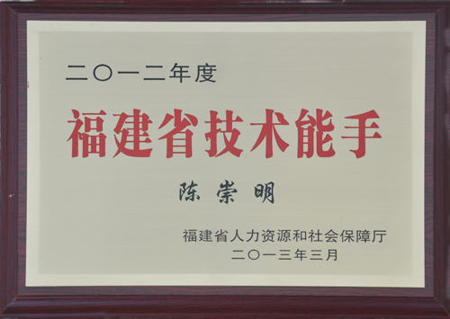 福建省技術能手(陳崇明) 福建省人力資源和社會保障廳